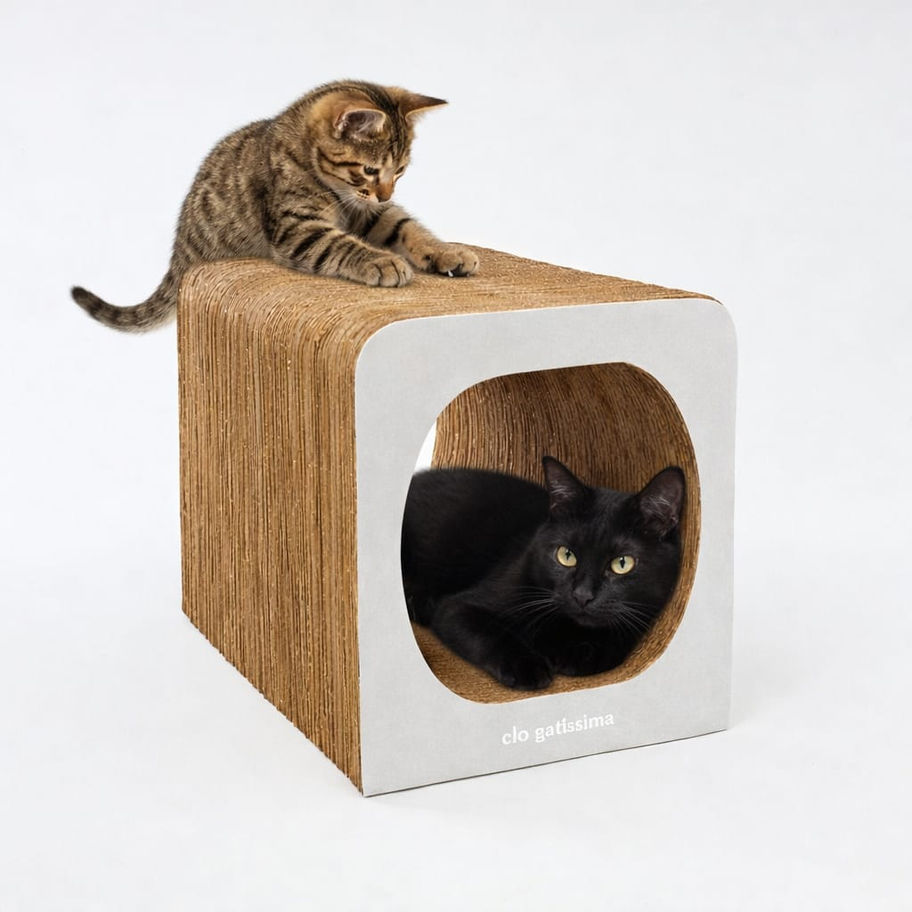 Com design moderno e compacto, ele oferece um cantinho seguro para descanso, arranhadas terapêuticas e aquela espiadinha estratégica do gato espreitando o mundo pela abertura circular.