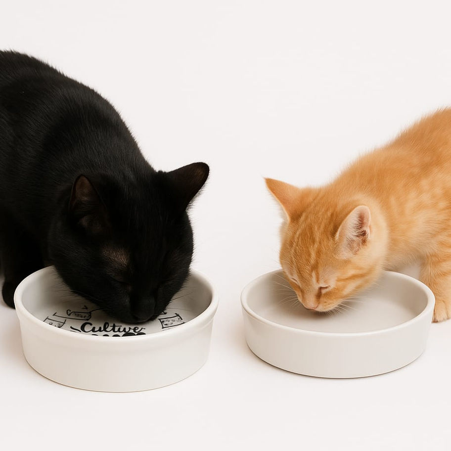 Desenhados na medida certa para oferecer ração ao seu gatinho sem despercícios. Produzidos em porcelana de alta qualidade e arte afixada em altíssimas temperaturas, garante durabilidade. A porcelana não reage com alimentos ou água.
